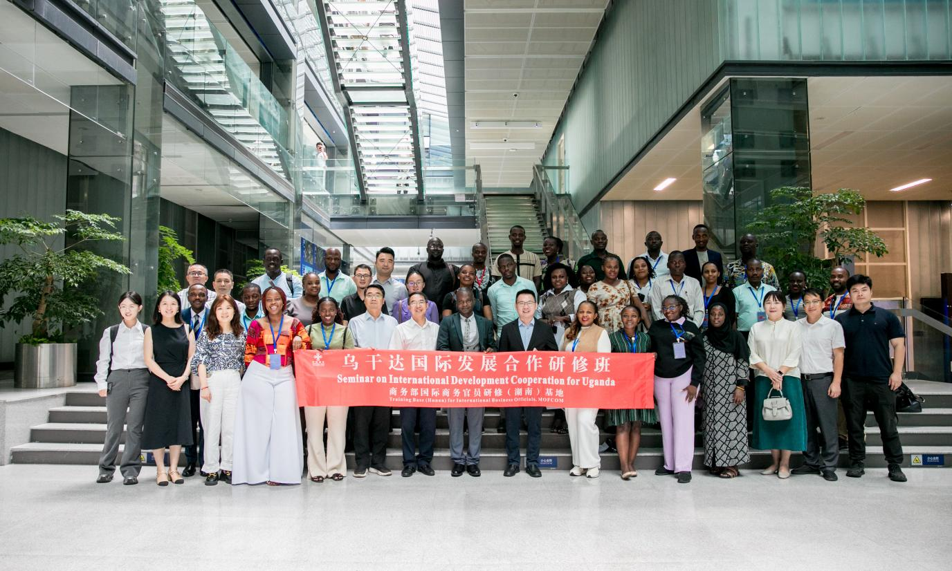 9月12日,在湖南外贸职业学院党委委员、副校长桂诚的陪同下,乌干达国家规划局发展规划主任弗兰克?塞姆巴久韦,工程和交通部工程师伊夫琳?卡胡马,贸易、工业和合作社部工程师亨利·奥萨皮尔·阿梅贾等31位国际发展合作研修班学员到访湖南设计。