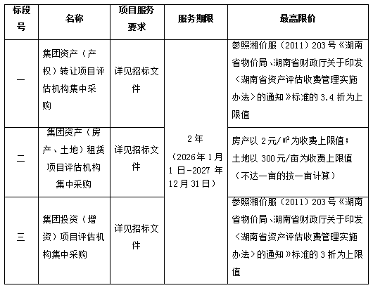 兴湘集团资产评估中介机构集中采购项目招标公告